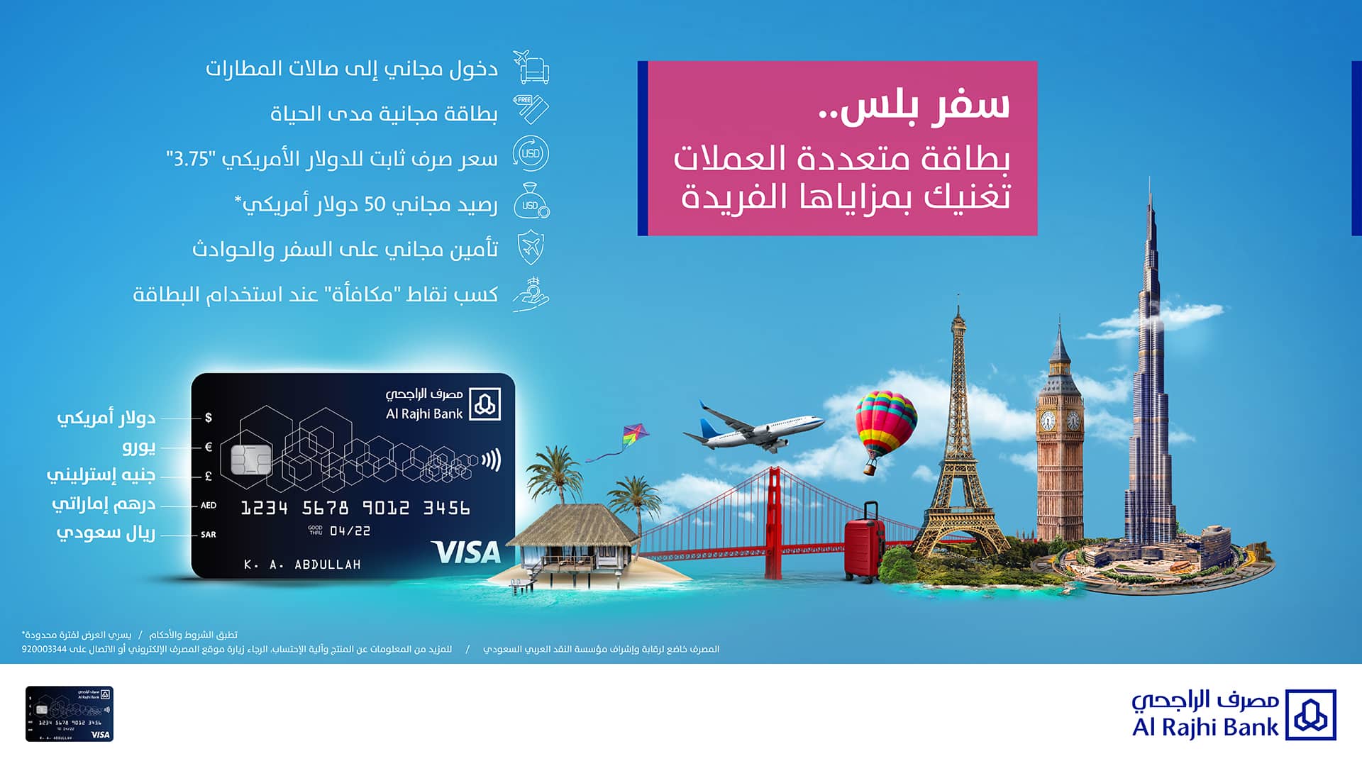 أعاد بنك الراجحي التأكيد على مزايا وشروط بطاقة سفر بلس المجانية مدى الحياة والتي تتيح لحاملها إمكانية الدخول إلى أكثر من 900 صالة انتظار في المطارات وسعر صرف ثابت للدولار الأمريكي 3.75 ريال. شروط بطاقة سفر بلس من بنك الراجحي وقال البنك إن من أهم شروط الحصول على البطاقة هو امتلاك حساب جارٍ فعال في أي من فروع البنك المنتشرة داخل المملكة والموافقة على بنود اتفاقية الخدمة المحددة على موقع مصرف الراجحي. وأضح البنك أن البطاقة مجانية مدى الحياة لكن يتم تحصيل 50 ريالًا عند الحصول على بطاقة بديلة، مشيرًا إلى أن سعر الصرف ثابت مقابل الدولار في حال السحب من أي ماكينة صراف آلي داخل المملكة أو خارجها. استخدام داخل وخارج المملكة وأضاف البنك أنه في حال السحب النقدي من صرافات بنك الراجحي يتم خصم 28 ريالاً عن كل عملية وفي حال كان السحب من صراف بنك محلي آخر يتم خصم 42 ريالاً ويصل هذا المبلغ إلى 50 ريالاً عند السحب من صرافات البنوك الدولية خارج المملكة. وقال البنك إن هذه البطاقة تستخدم في السحب النقدي، وشراء السلع والخدمات عبر المواقع الالكترونية وعبر نقاط البيع التي تقبل بطاقات فيزا بإدخال الرقم السري، ويتعهد حامل البطاقة بعدم سحب أي مبالغ بالبطاقة من محلات خلاف مكائن الصراف الآلي، وعدم تنفيذ سحوبات نقدية (يدوية) من فروع البنوك بالبطاقة. كما يتعهد حامل البطاقة بعدم استخدامها في تنفيذ مشتريات أو خدمات محرمة شرعاً.