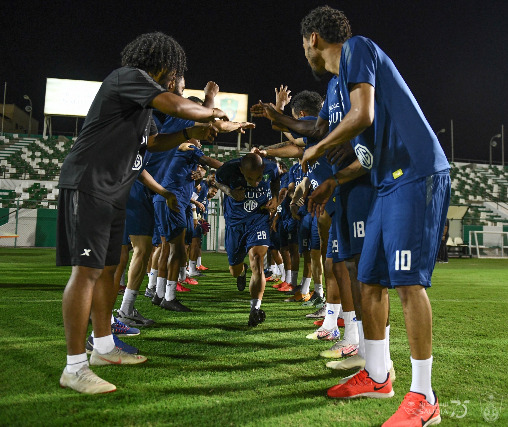 شارك المهاجم الروماني ألكسندرو ميتريتا في تدريبات الفريق الأول لكرة القدم بالنادي الأهلي الجماعية للمرة الأولى، مساء اليوم الاثنين. ميتريتا يُنعش المران: ونشر حساب النادي الأهلي الرسمي على موقع التدوينات القصيرة "تويتر"، صورًا لمشاركة ميتريتا في المران الجماعي اليوم، وسط حفاوة وترحيب من لاعبي الفريق الأول لكرة القدم. وكان النادي الأهلي قد تعاقد مع المهاجم الروماني مؤخرًا لتدعيم صفوفه على سبيل الإعارة حتى يناير عام 2022، قادمًا من الفريق الأول لكرة القدم بنادي نيويورك سيتي الأمريكي، ويمكن الاطلاع عبر الرابط التالي (اضغط هنا). المهاجم الروماني في المران الأهلي في دوري محمد بن سلمان: وبدأ النادي الأهلي مشواره في دوري كأس الأمير محمد بن سلمان للمحترفين بمواجهة الباطن بالأمس، وانتهت المباراة بفوز الراقي بهدف دون رد سجله اللاعب سلمان المؤشر في الشوط الأول، ويمكن الاطلاع عبر الرابط التالي (اضغط هنا). ويستعد الفريق الأول لكرة القدم بالنادي الأهلي لمواجهة نظيره الوحدة، مساء يوم الخميس المقبل، ضمن منافسات الجولة الثانية من دوري كأس الأمير محمد بن سلمان للمحترفين. ألكسندرو جانب من المباراة
