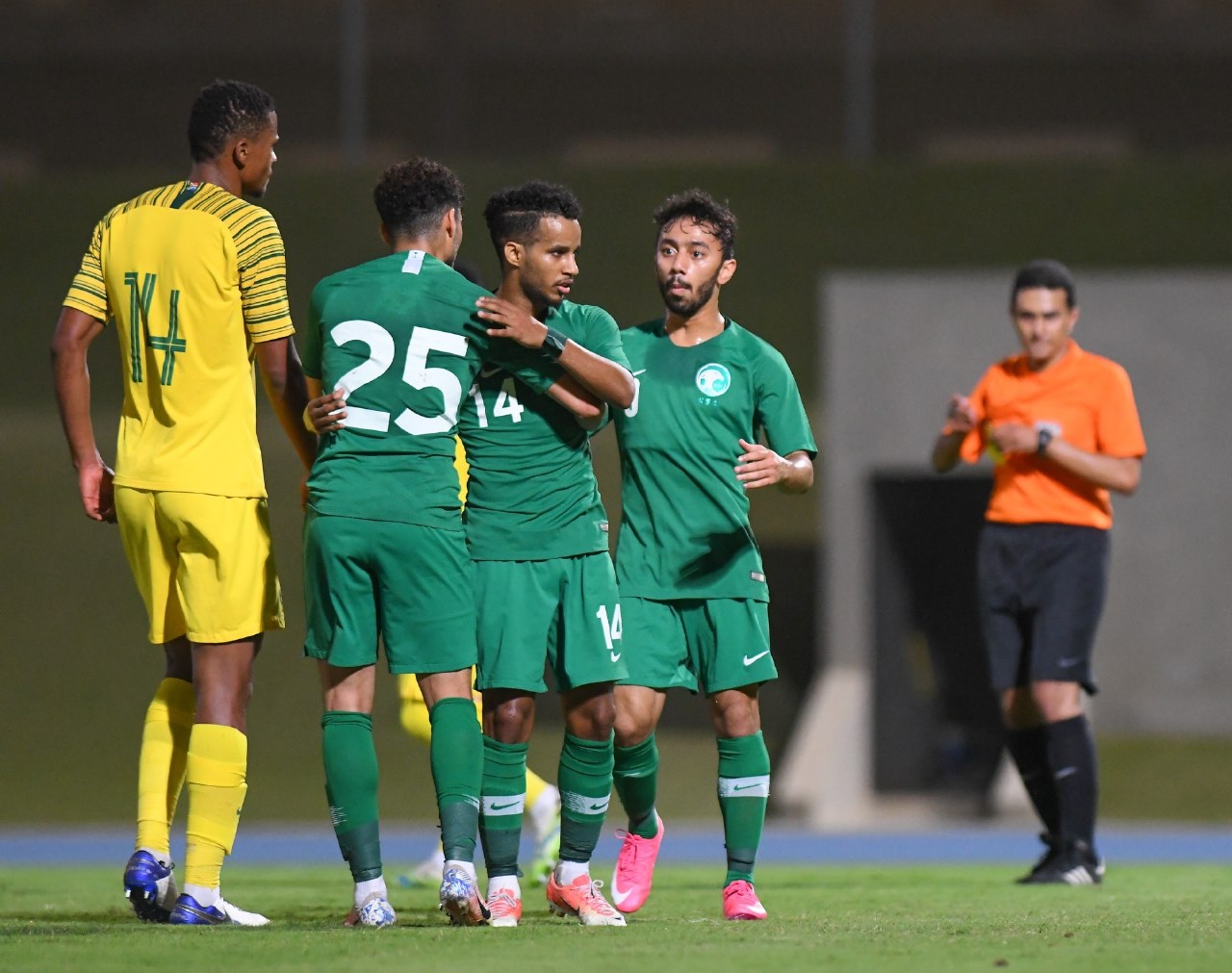 العناوين الفرعية إخفاء 1 السعودية ضد جنوب إفريقيا 1.1 الاستعداد لأولمبياد طوكيو: انتهت، منذ قليل، مباراة السعودية ضد جنوب إفريقيا التي أُقيمت على الملعب الرديف بمدينة الملك عبدالله الرياضية في جدة، بالتعادل الإيجابين بين المنتخبين. السعودية ضد جنوب إفريقيا وبدأ المدير الفني للأخضر الأولمبي، سعد الشهري المباراة بتشكيل مكون من؛ أمين البخاري، سعود عبدالحميد، عبدالإله العمري، عبدالباسط هندي، حمد اليامي، علي الحسن، ناصر العمران، عبدالرحمن غريب، سامي النجعي، حسين العيسى وسعد السلوي. جانب من المباراة وانطلقت مباراة السعودية ضد جنوب إفريقيا الودية بشكل سريع، وسط محاولات من الفريقين، أملًا في تسجيل هدف مبكر، إلا أن اللاعبين لم ينجحوا في هز الشباك طوال أحداث الشوط الأول، لينتهي بالتعادل السلبي. ومع بداية أحداث الشوط الثاني، تمكن منتخب جنوب إفريقيا من فض اشتباك التعادل السلبي عند الدقيقة 56، ليضغط لاعبو الأخضر بحثًا عن هز الشباك، قبل أن يتمكن عبدالرحمن غريب من إحراز التعادل عند الدقيقة 78. جانب من المباراة الاستعداد لأولمبياد طوكيو: وتأتي ودية اليوم ضمن معسكر الأخضر الأولمبي في جدة، في إطار المرحلة الثانية من البرنامج الإعدادي لمنافسات دورة الألعاب الأولمبية "أولمبياد طوكيو 2021"، والمقرر إقامتها، شهر يوليو المقبل. وكان المنتخب السعودي تحت 23 عامًا قد واجه نظيره جنوب إفريقيا وديًا، يوم السبت الماضي، ونجح في الفوز عليه بثلاثة أهداف مقابل هدفين، ويسعى لمواصلة تفوقه خلال مباراة اليوم. ذات صلة : 1. عبدالله عطيف يعود للمباريات بعد غياب 9 أشهر 2. السعودية تخطط لبناء أكبر بطارية لتخزين طاقة الرياح والطاقة الشمسية 3. الصين استخدمت سلاحًا يعتمد على أشعة الميكروويف لطهي الجنود الهنود ! 4. بومبيو يؤكد على موقف الولاياتالمتحدة القوي بشأن الحريات الدينية " المزيد من الاخبار المتعلقة :