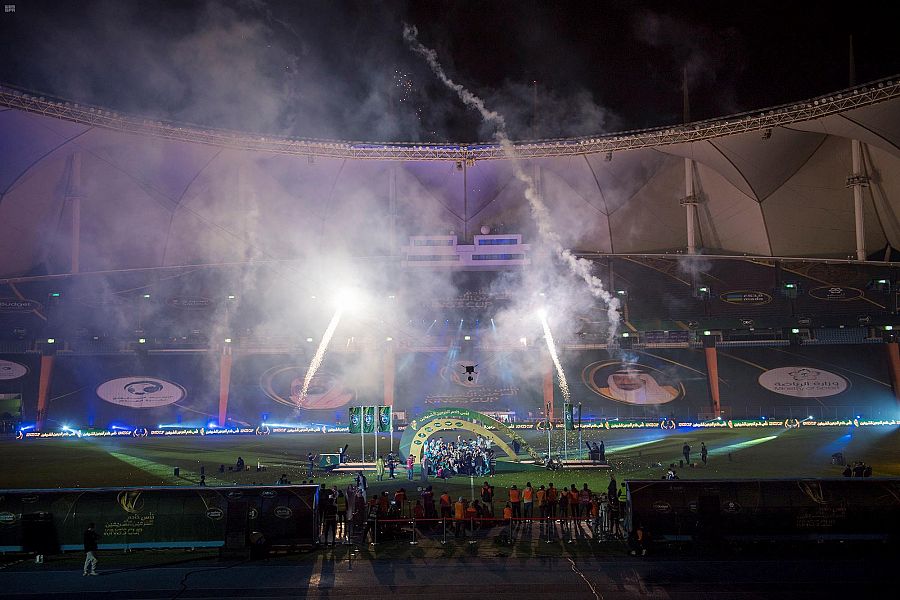 العناوين الفرعية إخفاء 1 أمير الرياض يُسلم النصر ميداليات المركز الثاني 2 أمير الرياض يشيد بطرفي نهائي كأس خادم الحرمين الشريفين رعى الأمير فيصل بن بندر بن عبدالعزيز أمير منطقة الرياض نيابة عن خادم الحرمين الشريفين الملك سلمان بن عبدالعزيز، المباراة النهائية على كأس خادم الحرمين الشريفين للموسم الرياضي 2019 – 2020، التي جمعت فريقي الهلال والنصر على إستاد الملك فهد الدولي بالرياض، مساء أمس السبت. ولدى وصول سموه ملعب اللقاء، كان في استقباله صاحب السمو الملكي الأمير عبدالعزيز بن تركي الفيصل وزير الرياضة رئيس اللجنة الأولمبية العربية السعودية، وسمو الأمير فهد بن جلوي بن مساعد نائب رئيس اللجنة الأولمبية، ومعالي مساعد وزير الرياضة الأستاذ عبدالإله بن سعد الدلاك، ورئيس وأعضاء مجلس إدارة الاتحاد السعودي لكرة القدم. وبعد أن أخذ سموه مكانه في المنصة الرئيسية عزف السلام الملكي بعدها بدأ الشوط الثاني من المباراة. وعقب المباراة التي انتهت بفوز فريق الهلال على فريق النصر بنتيجة هدفين مقابل هدف، تسلم صاحب السمو الملكي الأمير فيصل بن بندر بن عبدالعزيز، هدية تذكارية من وزارة الرياضة سلمها سمو وزير الرياضة الأمير عبدالعزيز بن تركي الفيصل، كما تسلم سموه هدية تذكارية من الاتحاد السعودي لكرة القدم بهذه المناسبة. بعد ذلك قام طاقم تحكيم المباراة بالسلام على سمو أمير منطقة الرياض واستلام ميدالياتهم. أمير الرياض يُسلم النصر ميداليات المركز الثاني وسلّم سموه عقب ذلك رئيس نادي النصر الدكتور صفوان السويكت وكابتن الفريق وليد عبدالله ومدرب الفريق بالنيابة عن لاعبي الفريق وأعضاء الجهازين الفني والإداري بالنادي الميداليات الفضية ومكافأة المركز الثاني عقب نهاية المباراة في نهائي كأس خادم الحرمين الشريفين. وتوّج سمو أمير منطقة الرياض في نهاية ذلك، رئيس نادي الهلال فهد بن نافل وكابتن الفريق سلمان الفرج ومدرب الفريق بالنيابة عن لاعبي الفريق وأعضاء الجهازين الفني والإداري بالنادي الميداليات الذهبية ومكافأة المركز الأول عقب الفوز بلقب كأس خادم الحرمين الشريفين. أمير الرياض يشيد بطرفي نهائي كأس خادم الحرمين الشريفين وفي ختام المبارة أدلى صاحب السمو الملكي الأمير فيصل بن بندر بن عبدالعزيز بتصريح صحفي بهذه المناسبة قال فيه: "أفخر وأعتز بالتواجد هذا المساء نيابة عن سيدي خادم الحرمين الشريفين في هذا النهائي المهم و المجال الأهم لأبناء الوطن، فحقيقةً شاهدنا مباراة جميلة وتنافس كبير ومستوى راقي، ونتمنى أن يوفق الجميع إلى مستويات عالية بدعم ورئاسة وتخطيط سمو وزير الرباضة الذي فعلاً أثبت وجوده ووضع بصماته على هذا المستوى الراقي وأرجو له التوفيق ولجميع الأندية ورؤساء الأندية واللاعبين".