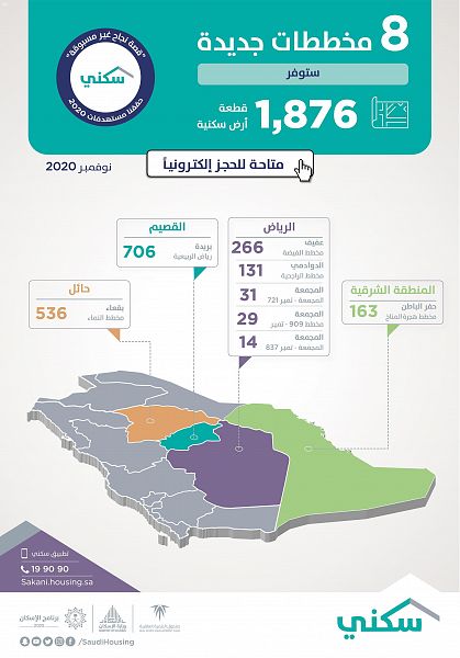 أعلن برنامج سكني التابع لوزارة الإسكان إضافة 8 مُخططات سكنية جديدة عبر بوابته الإلكترونية وتطبيق الهواتف الذكية ضمن المخططات السكنية المُتاحة للحجز، ليصل إجمالي المُخططات التي طُرحت عبر "سكني" إلى 217 مخططاً، توفّر أكثر من 178 ألف أرض. ويستمر البرنامج في طرح المزيد من المخططات شهريًا ضمن الخيارات والحلول السكنية المتنوعة التي يتيح حجزها إلكترونياً ضمن إجراءات سهلة وميسرة، داعياً الراغبين في الاستفادة من هذه الخيارات إلى زيارة موقع وتطبيق سكني الإلكتروني لاستكمال جميع الإجراءات، ويمكن تحميل التطبيق للاستفادة من الخدمات التي يقدمها من خلال الرابط. وأوضح برنامج سكني في بيانٍ صحفي اليوم أنه فعَّل الاختيار الإلكتروني ل 8 مخططات جديدة مُوزعة على 4 مناطق توفر 1876 قطعة أرض، حيث أضاف "سكني" 5 مخططات في منطقة الرياض منها مخطط "الفيضة" في محافظة عفيف ليوفّر 266 قطعة أرض، كذلك في محافظة الدوادمي مخطط "الراجحية" الذي يضّم 131 قطعة أرض، إضافة إلى ثلاثة مخططات في محافظة المجمعة هي "المجمعة تمير 721" الذي يوفّر 31 قطعة أرض، ومخطط "المجمعة تمير 837′′ الذي يوفّر 14 قطعة أرض، و"مخطط 909 المجمعة تمير" الذي يوفر 29 قطعة أرض، وجميعها متاحة للحجز الإلكتروني. وأشار البيان إلى إضافة مخطط جديد في منطقة القصيم في محافظة بريدة "رياض الربيعية" ليوفّر 706 قطع أراضٍ ، ومخطط "هجرة المناخ" بمحافظة حفر الباطن في المنطقة الشرقية الذي يضم 163 قطعة أرض، وأخيراً مخطط "النماء" بمحافظة بقعاء التابعة لمنطقة حائل الذي يوفّر 536 أرضا سكنية. وأتاحت البوابة الإلكترونية لبرنامج سكني في وقت سابق خاصية اختيار المخططات السكنية بالدخول إلى صفحة الحلول السكنية والضغط على خيار "الأراضي السكنية" وتحديد موقعها وفق رغبات المستفيدين واحتياجاتهم أو الدخول على الرابط تمهيداً لإصدار تراخيص البناء خلال 6 أشهر وبنائها خلال 3 سنوات. وبيّن البرنامج أن ذلك يأتي في إطار استمراره وسعيه الدائم لاستحداث حلول إلكترونية تساعد في تسهيل الإجراءات على المواطنين الراغبين في تملك الأراضي والاستفادة من خيار "البناء الذاتي" عبر تطبيق الأجهزة الذكية لتوقيع العقد إلكترونياً دون الحاجة لمراجعة الفروع، إضافة إلى خدمة اختيار التصاميم النموذجية لمستفيدي "البناء الذاتي" وإصدار رخص البناء إلكترونياً عبر تطبيق "سكني" بهدف تمكين المواطنين من الحصول على المسكن الملائم ورفع نسبة التملّك السكني إلى 70% بحلول عام 2030 وفقاً لمستهدفات برنامج الإسكان – أحد برامج رؤية المملكة 2030- .