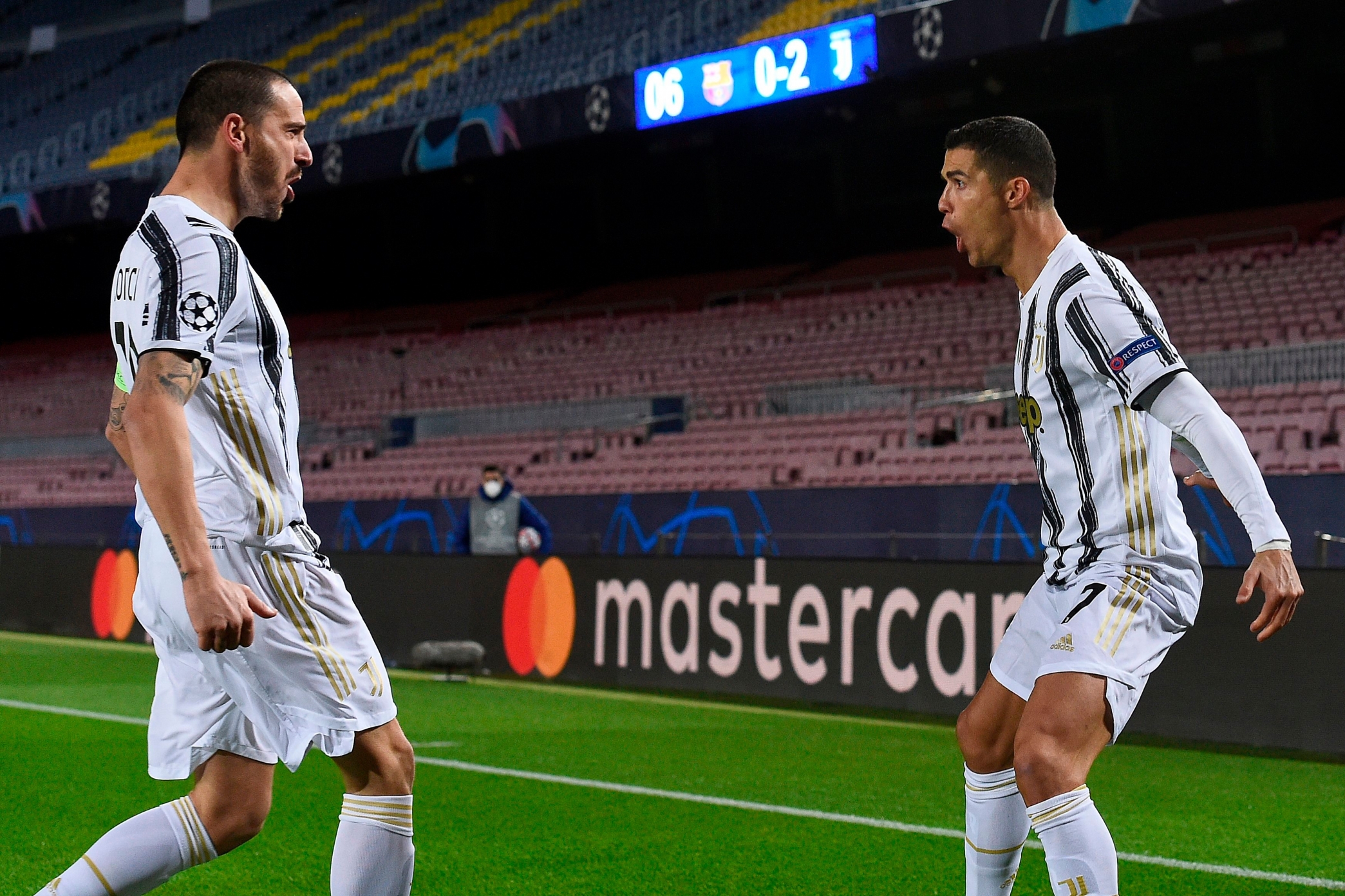 كريستيانو يحتفل بهدفه برشلونة ضد يوفنتوس: ومع بداية أحداث الشوط الثاني، أطلق ميسي تسديدة قوية من خارج منطقة الجزاء، وتألق بوفون وتصدى لها على مرتين، قبل أن يحتسب الحكم ركلة جزاء لليوفي في الدقيقة 49 بعد اللجوء إلى تقنية الفيديو، ليسددها رونالدو بنجاح، ويمنح فريقه الهدف الثالث. وكاد أنطوان جريزمان أن يسجل الهدف الأول من كرة رأسية، إلا أنها اصطدمت بالعارضة، وواصل ميسي محاولاته وأطلق تسديدة صاروخية، ولكن بوفون حرمه من هز الشباك وأبعدها ببراعة. واحتسب الحكم ركلة جزاء للفريق الكتالوني بعد عرقلة جريزمان، ولكنه تراجع عن قراره واحتسب اللعبة تسلل، قبل أن يسجل بونوتشي الهدف الرابع عند الدقيقة 75، إلا أن تقنية الفيديو أنقذت البارشا، وأكدت وجود تسلل. وقبل دقيقة واحدة على نهاية المباراة، أطلق ميسي تسديدة قوية، ولكن بوفون مارس هوايته وأبعدها، لتنتهي مواجهة برشلونة ضد يوفنتوس بتحقيق اليوفي لفوز كبير بثلاثية. واقتنص الفريق الأول لكرة القدم بنادي يوفنتوس صدارة المجموعة السابعة في دوري أبطال أوروبا بعدما رفع رصيده إلى 15 نقطة، فيما تجمد رصيد برشلونة عند نفس عدد النقاط، وتراجع إلى المركز الثاني. جانب من المباراة ذات صلة : 1. نتائج مباريات الثلاثاء في دوري أبطال أوروبا 2. أمريكا تفرض عقوبات على وسطاء للحرس الثوري 3. بايدن يختار الجنرال لويد أوستن لتولي وزارة الدفاع 4. ترامب يوقع أمرًا لضمان حصول كل أمريكي على لقاح كورونا المجاني والآمن " المزيد من الاخبار المتعلقة :
