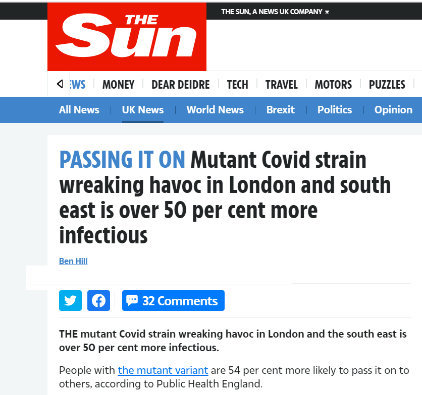 قالت منظمة الصحة العالمية في إنجلترا إن سلالة كورونا المتحورة التي سببت الفوضى في لندن والجنوب الشرقي هي أكثر عدوى بنسبة 54% وهي بذلك أقل بكثير من النسبة التي قالها رئيس الوزراء البريطاني، بوريس جونسون، حيث كان قد أعلن أنها أكثر عدوى بنسبة 70%. وعلى الرغم من كون سلالة كورونا المتحورة أكثر عدوى، إلا أنها لا تسبب أعراضًا أسوأ أو المزيد من الوفيات. وقارنت الدراسة بين 1769 شخصًا يعانون من السلالة الطافرة ونفس العدد من الأشخاص من نفس الجنس والأعمار والمساكن وتواريخ الإصابة مع سلالات مختلفة من الفيروس. كما وجد أن السلالة الجديدة لم تكن معدية بين الأطفال أكثر من السلالات الأخرى. وكان المسؤولون قد ألقوا باللوم على زيادة عدد الإصابات بفيروس كورونا في لندن على السلالة الطافرة والتي بسببها أعلنت المملكة المتحدة فرض القيود الصارمة والإغلاق من المستوى الرابع. وأصبحت الهند أحدث دولة تعلن أن سلالة المملكة المتحدة قد وصلت إليها، بعد أن ثبتت إصابة ستة أشخاص عادوا مؤخرًا من بريطانيا، وبدأ المسؤولون في الهند بتعقب المخالطين عن قرب وأفراد عائلات الستة الذين ثبتت إصابتهم بالمتغير الجديد، بحسب BBC. كما أعلنت الولاياتالمتحدة إصابة أحد مواطنيها ب سلالة كورونا المتحورة رغم أنه لا يمتلك أي تاريخ من السفر. ذات صلة : 1. الملك سلمان يوجه الدعوة لأمير قطر للمشاركة في الدورة ال41 لمجلس التعاون 2. وزير الصحة البريطاني: لقاح أكسفورد سينقذنا في الربيع 3. اختتام المزاد العلني في تبوك بأكثر من 15 مليون ريال 4. مستشفى الملك فيصل يطلق برنامجًا علاجيًا عبر إعادة هندسة الخلايا " المزيد من الاخبار المتعلقة :