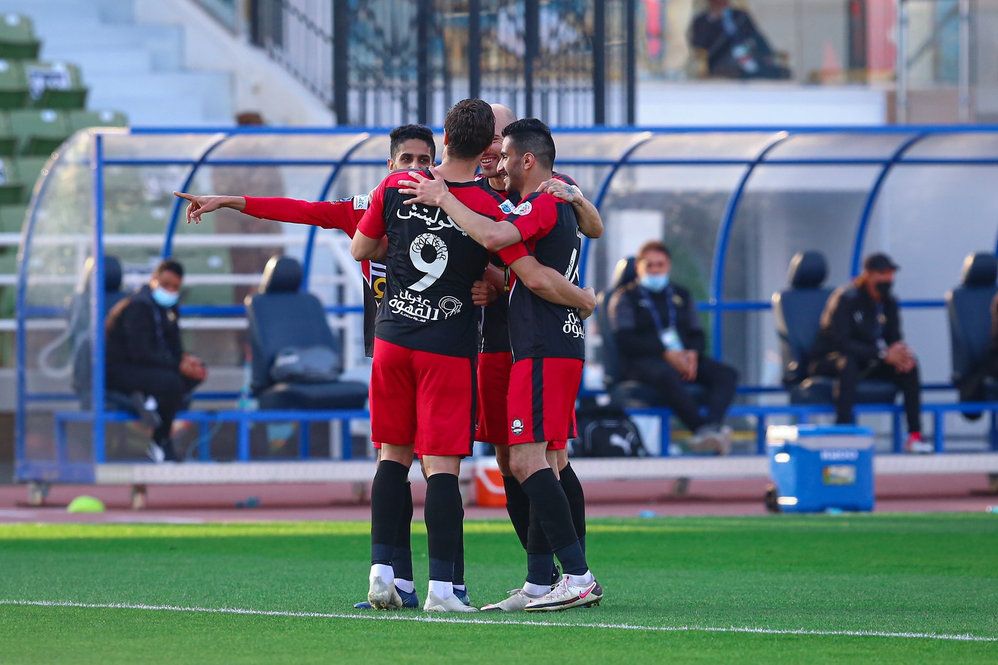 احتفال اللاعبون الفرق الأكثر تسجيلًا بالشوط الأول وكشف حساب دوري كأس الأمير محمد بن سلمان للمحترفين الرسمي على موقع التدوينات القصيرة "تويتر"، الفرق الأكثر تسجيلًا في الشوط الأول خلال ال11 جولة الماضية، حيث يحتل العين المركز الثاني برصيد 9 أهداف بنسبة 60%. فريق العين وجاء الاتحاد في المركز الثالث برصيد 8 أهداف بمعدل 57%، يليه النادي الأهلي ب10 أهداف بنسبة 56%، ثم الفريق الأول لكرة القدم بنادي الفتح برصيد 11 هدفًا بمعدل وصل إلى 55%. فريق الأهلي