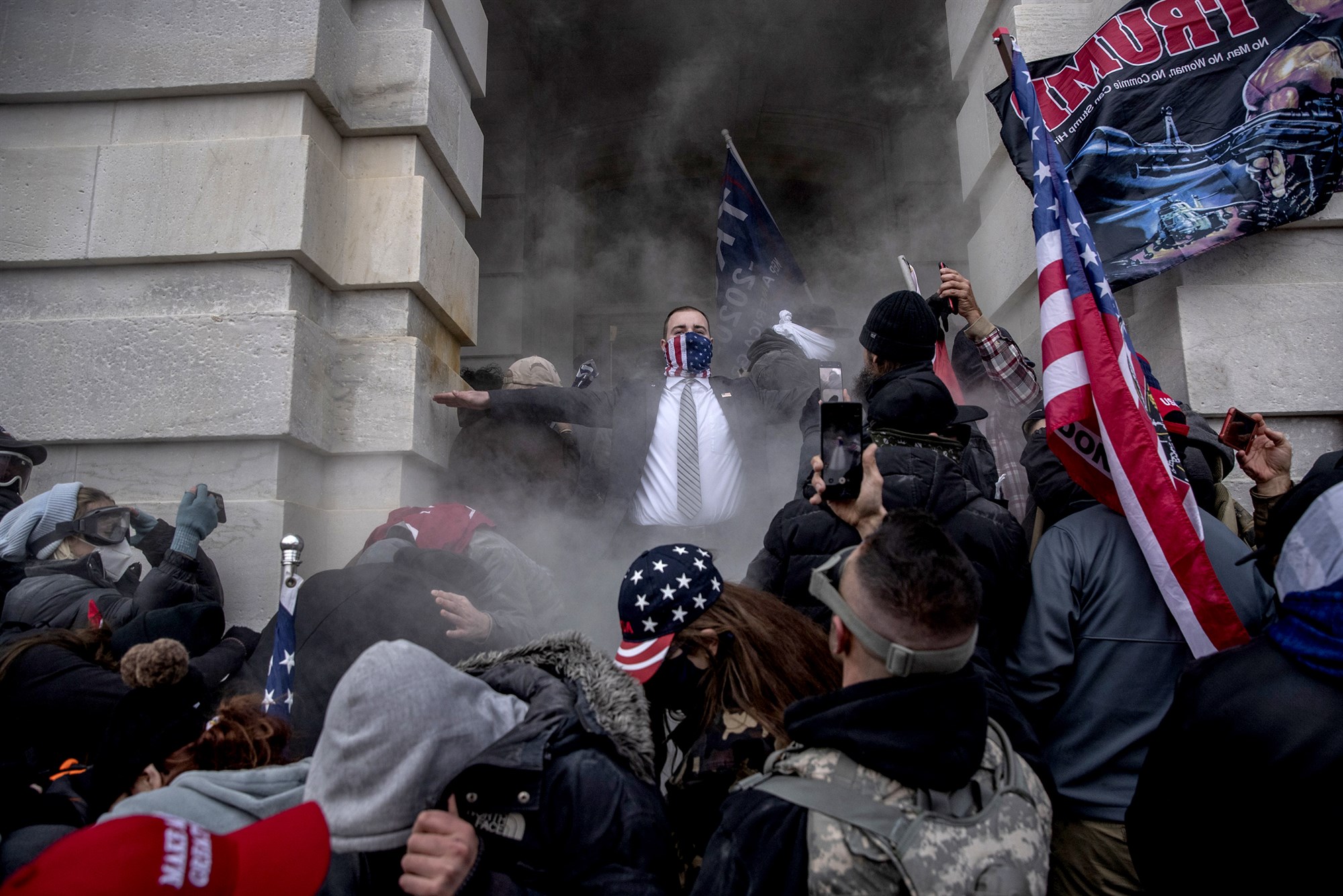 عندما نزل أنصار ترامب إلى مبنى الكابيتول، أمس الأربعاء، كانوا يتبعون توجيهات الرئيس دونالد ترامب، حيث قال لمؤيديه في تجمع بالقرب من البيت الأبيض قبل الهجوم: سنضطر إلى القتال بقوة أكبر، مضيفًا: سوف نسير إلى مبنى الكابيتول، ونستجمع شجاعتنا، ونستعيد بلادنا لأننا لن نستعيدها أبدًا بضعف. Crowd begins fanning out toward the Capitol as Trump continues speaking pic.twitter.com/VeIo8gHYsI — Allan Smith (@akarl_smith) January 6, 2021 وقال أحد حراس الكونغرس لشبكة NBC: لم ينتظر الكثير من الحشد الهائل حتى ينتهي الرئيس من الحديث، حيث بدأوا مسيرة في مبنى الكابيتول، واخترقوا حواجز الشرطة، ومزقوا غرف الكونجرس وخربوا الرمز الأساسي للحكومة الفيدرالية. وتابع: محاولات المشاغبين لوقف تأكيد الكونجرس على فوز الرئيس المنتخب جو بايدن باءت بالفشل، لكنهم لم يستسلموا ولم ينتهوا بعد. وأنكر الحارس الذي رفض التصريح عن هويته نظريات المؤامرة التي يطلقها مستخدمو مواقع التواصل الاجتماعي بشأن أن حراس الكابيتول سمحوا للمشاغبين بدخول الكونجرس للتأكيد على أن ترامب يدعو للشغب قائلًا: هؤلاء الأشخاص غارقين في نظريات المؤامرة ومشحونين بها، لقد قاتلنا بكل قوة، واضطر بعضنا لرفع السلاح في وجه أفراد الشعب الأمريكي، لكن في النهاية الكثرة تغلب الشجاعة. واستطرد: عندما قضيت ساعات في محيط مبنى الكابيتول يوم الأربعاء، سمعت رسالة واحدة مرارًا وتكرارًا، بشكل أو بآخر، وهي أننا لن نستسلم، وسننتصر لترامب. وقال الحارس إن هناك بعض الجمل التي ظلت تتردد صداها في ذهنه طوال ليلة أمس وهي كالتالي: رجل أخبر الشرطة بأن ينتظروا حتى يعودوا بالبنادق، وآخر قال حان الوقت لنأخذ أسلحتنا ونقاتل، بينما صاح آخر في وجه الحارس وهدده بكسر جمجمته. وأضاف الحارس أنه سمع أحد الرجال أثناء السير بين تجمع ترامب والكونغرس يقول: هل نقتحم مبنى الكابيتول أم نتوقف عند المطعم لنأكل؟ وتابع أنه من موقفه الحالي لا يرى أي أمل بأن تنتهي هذه الفوضى قريبًا.