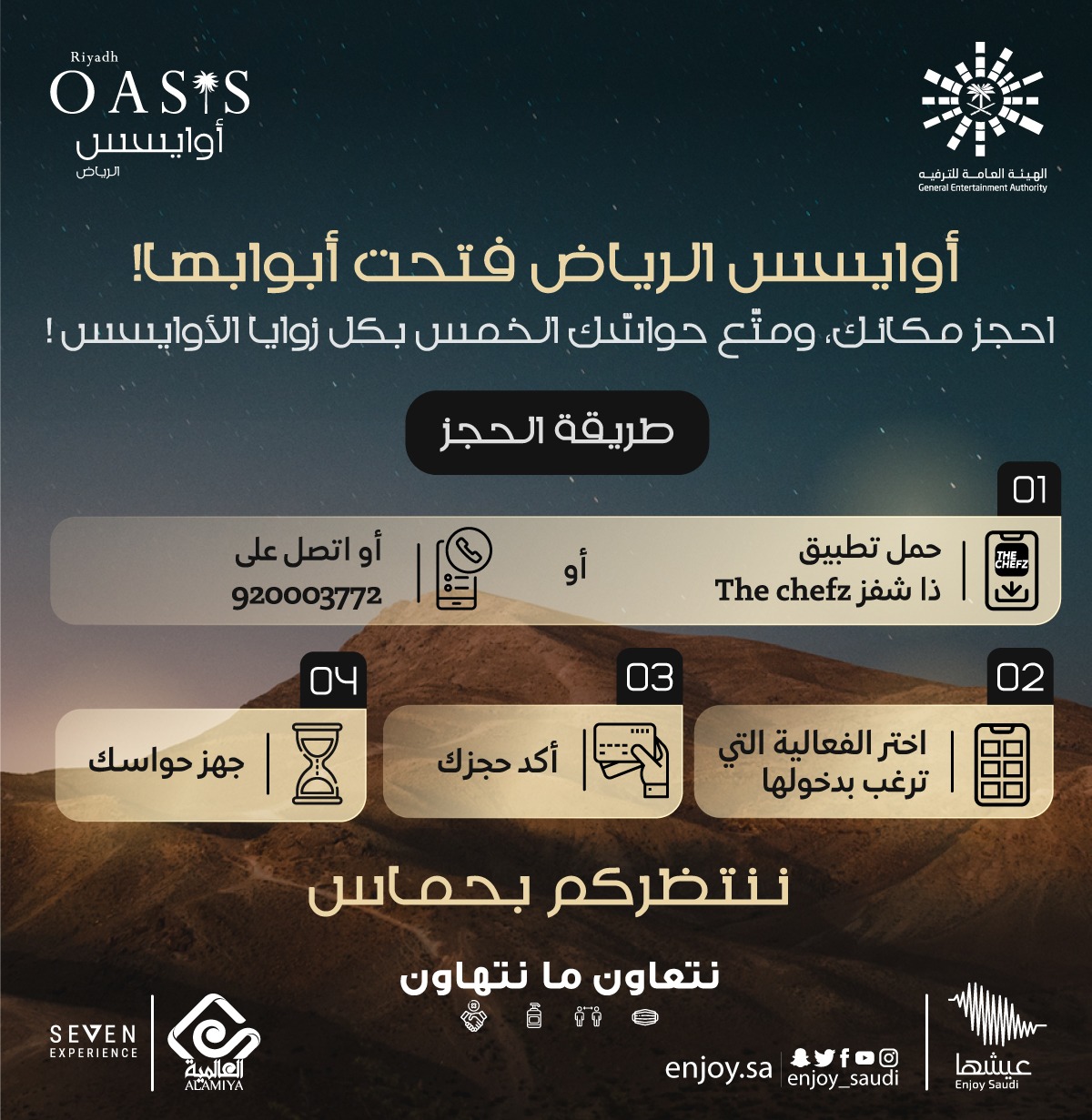 أعلنت الهيئة العامة للترفيه عودة فعالية أوايسس الرياض الترفيهية للعمل بدءًا من اليوم، وذلك بناء على قرار وزارة الداخلية بالسماح للأنشطة والمرافق الترفيهية بمزاولة العمل مع الالتزام بالإجراءات الاحترازية للوقاية من فيروس "كورونا المستجد" (كوفيد19). شروط الدخول: وشددت على ضرورة التزام "زوار أوايسس "الرياض ب"البروتوكولات" والإجراءات الاحترازية، وتحميل تطبيق "توكلنا"، وارتداء الكمامة، والمحافظة على التباعد الجسدي، وتجنب المصافحة، وغسل اليدين وتعقيمهما باستمرار، إضافة إلى عدم اصطحاب من يقل عمره عن 15 عامًا، كما يُفضل وحرصًا على سلامة كبار السن ومن لديهم أمراض مزمنة، عدم حضورهم. فحوصات كورونا يوميًا: وأكدت الهيئة أن جميع العاملين في الفعالية تجرى لهم فحوص فيروس "كورونا" يوميًا، إضافة إلى تعقيم جميع المواقع والممرات بشكل دوري وعلى مدار الساعة للمحافظة على صحة وسلامة زوار الفعالية. وأشارت إلى أن الزوار الذين لديهم حجوزات سابقة خلال فترة إيقاف الأنشطة الترفيهية يمكنهم إعادة جدولتها في الوقت المناسب لهم، عبر الرقم 920003772. ويُعد أوايسس الرياض أحدث مشروع ترفيهي فاخر في قلب الصحراء الداخلية بالمملكة، ويتضمن مجموعة متنوعة من الأنشطة الترفيهية، والمطاعم الراقية.