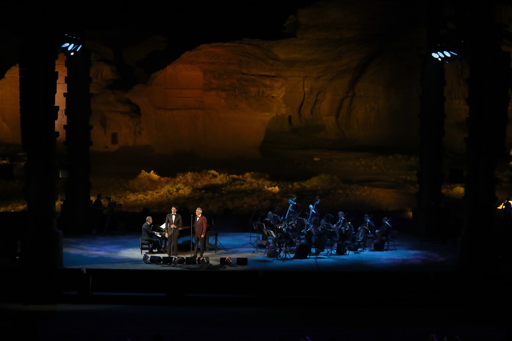 أقام مغني الأوبرا الإيطالي العالمي آندريا بوتشيلي، الخميس 8 إبريل، حفلًا غنائيًّا مدهشًا في موقع الحِجْر الأثري (مدائن صالح) بمحافظة العلا التاريخية. مفاجآت الحفل التاريخي: وتضمن الحفل عدة مفاجآت كان أبرزها غناء آندريا مع ابنه وابنته لأول مرة على المسرح، حيث أظهرت العائلة- متعددة المواهب- براعتها الموسيقية مع تبديل بوتشيلي العزف على الآلات الموسيقية طوال الحفل. الموسيقى أعظم موحد للشعوب: وقال بوتشيلي وفقًا لتصريحات صحفية: الحفل كان يهدف إلى الاحتفال بالحياة والموسيقى، كوكبنا جميل والموسيقى هي أعظم موحد في العالم، لذا كانت هذه اللحظة بالنسبة لنا تدور حول نشر القليل من الفرح، حيث نرى جميعًا الضوء في نهاية النفق ونتطلع إلى الاستمتاع بالموسيقى معًا مرة أخرى قريبًا. أول فنان يقيم حفلًا بموقع الحِجر: ويعتبر آندريا مغني الأوبرا العالمي أول فنان في التاريخ يقدم حفلًا موسيقيًّا على أرض موقع الحِجر، والذي متّع محبيه سابقًا في نسختين من فعاليات مهرجان شتاء طنطورة. الملايين شاهدوا الحفل عبر النت: وبسبب قيود كورونا كان الحضور الجماهيري للحفل التاريخي محدود جدًّا، إلا أن الملايين من جماهير بوتشيلي شاهدوا البث المباشر على قناة MBC1 في الشرق الأوسط وشمال إفريقيا، وعبر قناته على يوتيوب. رؤية ولي العهد لإحياء تراث العلا: ويأتي حفل بوتشيلي بعد يوم من إطلاق ولي العهد رئيس مجلس إدارة الهيئة الملكية لمحافظة العلا الأمير محمد بن سلمان للرؤية التصميمية "رحلة عبر الزمن" التي تهدف لإحياء وتأهيل المنطقة الأثرية الرئيسة في العلا، حيث يعد المشروع محطة رئيسة ضمن برنامج تطوير العلا وتحويلها إلى وجهة عالمية رائدة للفنون والتراث والثقافة والطبيعة، تحقيقًا لمستهدفات رؤية المملكة 2030. مخطط رحلة عبر الزمن: ويتكون مخطط "رحلة عبر الزمن" من 3 مراحل رئيسة، ومن المقرر أن تكتمل أولى مراحله بنهاية العام 2023م، كما أنه يقدم خارطة تاريخية مميزة لحضارات استوطنت واحات العلا المتنوعة على مدار أكثر من 7000 عام من التاريخ البشري، من خلال استثمار الغنى التراثي والثقافي والثراء الطبيعي والجيولوجي للمنطقة. مسرح شيده الأنباط قبل 3000 سنة: يشار إلى أن المسرح الذي أقيم فيه حفل بوتشيلي بموقع الحِجْر الأثري في محافظة العلا، شيده الأنباط بمملكة دادان قبل نحو 3000 عام، وهو أول موقع بالمملكة يصنفه اليونسكو في قائمته للتراث العالمي. وتضم مدائن صالح آلاف المدافن المنحوتة بشكل متقن في جبال من الحجر الرملي، وتعتبر من أبرز المعالم السياحية السعودية.