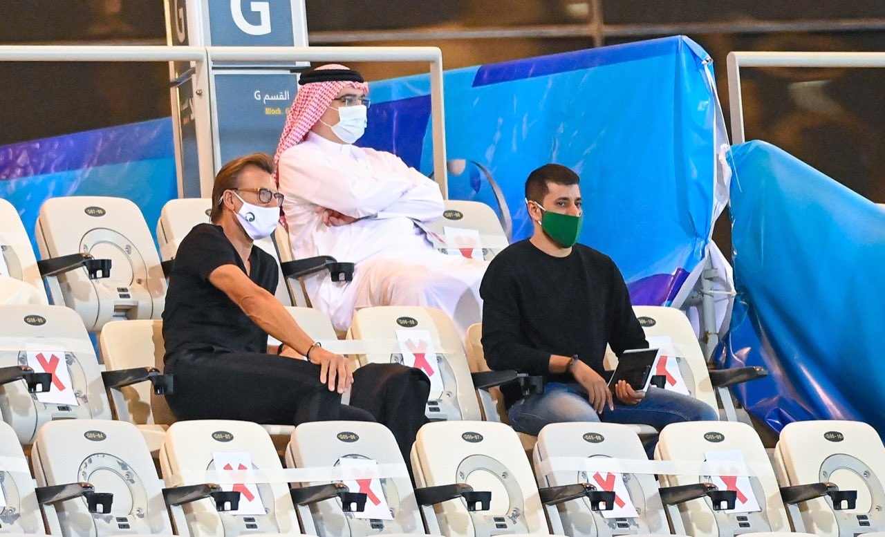 يُتابع مدرب المنتخب السعودي الأول لكرة القدم، الفرنسي هيرفي رينارد، مباراة الأهلي والدحيل القطري المقامة الآن من المدرجات. رينارد يحضر مباراة الأهلي والدحيل: ويلعب الأهلي والدحيل الآن على ملعب الصالة الرياضية بمدينة الملك عبدالله الرياضية في جدة ضمن منافسات الجولة الثانية من مرحلة المجموعات في بطولة دوري أبطال آسيا 2021. ونشر حساب المنتخب السعودي الرسمي على موقع التدوينات القصيرة "تويتر"، صورة للفرنسي رينارد وهو يُتابع مباراة الأهلي والدحيل من المدرجات برفقة مساعده محمد أمين. رينارد في المدرجات – المصدر @SaudiNT الدحيل يتقدم بهدف: وكان الشوط الأول من المباراة قد انتهى بالتعادل السلبي بين الفريقين، وسط تألق لافت من حارس مرمى الفريق الأول لكرة القدم بالنادي الأهلي، محمد العويس الذي نجح في الحفاظ على نظافة شباكه، ويمكن الاطلاع على التفاصيل عبر الرابط التالي (اضغط هنا). وقبل مباراة اليوم، يتذيل الفريق الأول لكرة القدم بالنادي الأهلي جدول ترتيب المجموعة الثالثة في دوري أبطال آسيا 2021، فيما يحتل الدحيل القطري المركز الثاني برصيد 3 نقاط، وبفارق الأهداف عن الاستقلال المتصدر. جانب من المباراة – المصدر @theAFCCL_ar