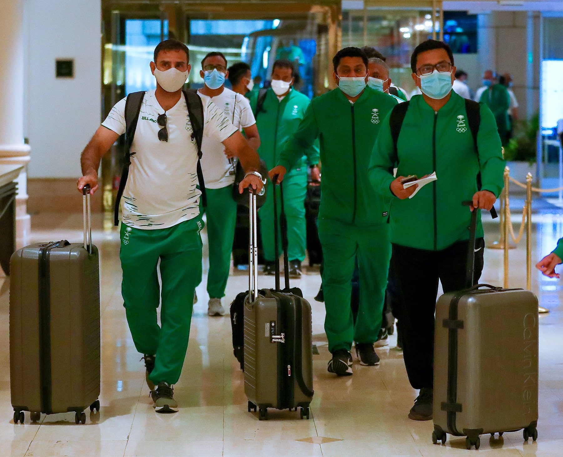 جانب من وصول البعثة – المصدر @saudiolympic وتابع: " أوّل الواصلين إلى طوكيو.. الصقور الخضر يصلون إلى العاصمة اليابانية قبل أيّام من اللقاء الافتتاحي المنتظر من أمام منتخب ساحل العاج والذي سيقام قبل حفل الافتتاح الرسمي ل طوكيو2020 بيوم واحد".