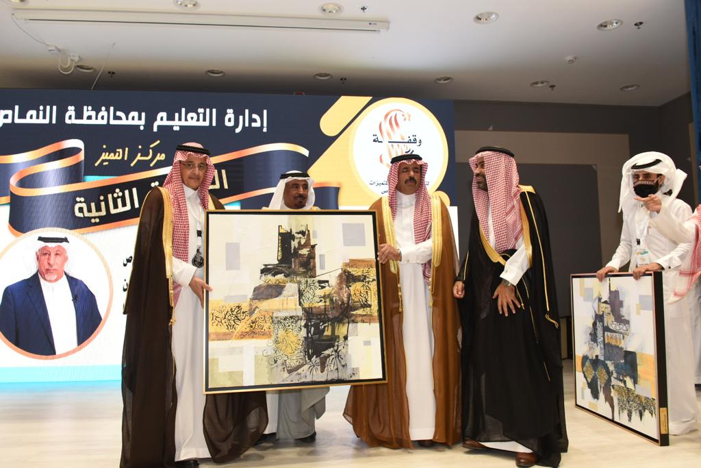 رعى محافظ النماص، سعد بن هياف القرقاح، اليوم الثلاثاء، حفل تكريم الفائزين والفائزات بجائزة مبادرة وقفة إجلال في دورتها الثانية والبالغ عددهم 148 فائزًا وفائزة بمسرح إدارة تعليم النماص (بنين وبنات). تفاصيل الجائزة: وحضر الداعمان ل جائزة وقفة إجلال رجلا الأعمال علي بن سليمان الشهري وناب عنه المنهدس عامر بن سليمان الشهري وعبدالله بن محمد البكري وعدد من مديري الإدارات والمؤسسات ومنسوبي ومنسوبات تعليم النماص. وشملت الجائزة جميع فئاتها؛ الطالب المتميز والمعلم المتميز والإداري المتميز والمشرف المتميز والمدرسة المتميزة والمنجز النوعي المتميز، والذي أضيف هذا العام لفئات الجائزة. فقرات وعروض: وتخلل الحفل العديد من الفقرات والكلمات، والعروض شملت رحلة الجائزة ومراحلها منذ تدشينها يوم الاثنين الموافق 8 ذي القعدة 1441ه، وفق معايير محددة ومحكمة من لجان علمية تضمن العدالة وتحقق مبدأ التنافس الشريف، والذي حرص مدير تعليم النماص عمر بن هجاد الغامدي على نشر ثقافته بين منسوبي ومنسوبات التعليم، كما اشتمل الحفل على رسالة وفاء لرموز العطاء وكذلك تكريم الرعاة ومحافظ النماص. بدوره قدم الغامدي شكره وامتنانه للداعمين وما لهم من أيادٍ بيضاء في خدمة المنطقة وخاصة محافظتي تنومة والنماص والمجتمع. جدير بالذكر أن جائزة وقفة إجلال رصدت جوائزها بقيمة مليون ريال على مدى خمس سنوات بدأت من العام الماضي. مقالات ذات صلة تعليم النماص: 12 مليون ريال لأعمال الصيانة والنظافة لاستقبال الطلاب محافظ النماص يدشّن مركز لقاح كورونا لمنسوبي التعليم تعليم النماص يحصد التميز على مستوى الخليج العربي استشاري أمراض معدية يقترح حلاً لمواجهة ارتفاع إصابات كورونا رئيس جامعة بيشة يتفقد سير الدراسة خالد حامد يُطرب الحضور بمهرجان ربيع السروات بالنماص عملية نادرة لاستبدال مفصل عظمة الزند لمريض في النماص صور.. تعليم النماص يحتفي ب اليوم الوطني 90 أمير عسير يوجه بإزالة تعديات النماص وإحالة المسؤولين ل مكافحة الفساد