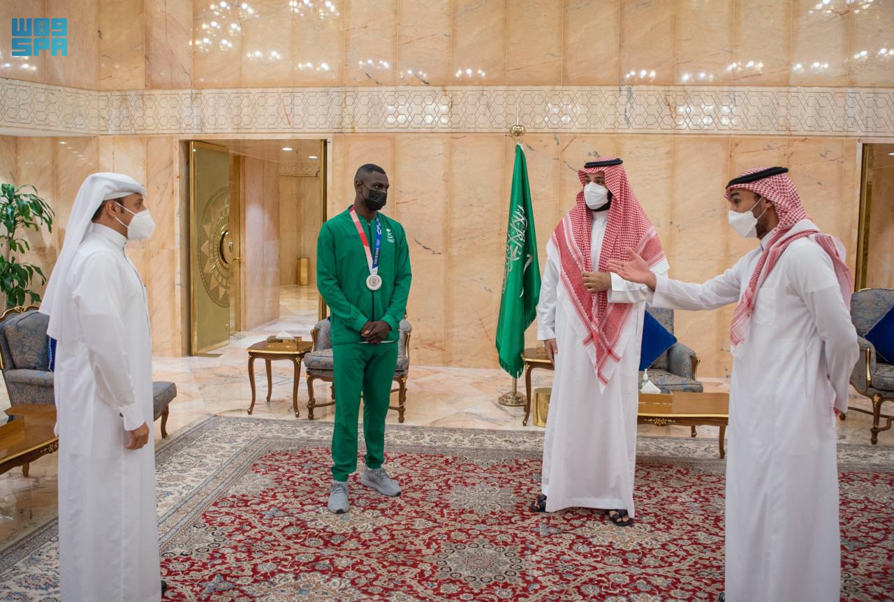 التقى صاحب السمو الملكي الأمير محمد بن سلمان بن عبد العزيز ولي العهد نائب رئيس مجلس الوزراء وزير الدفاع، اليوم، اللاعب طارق حامدي الحائز على الميدالية الفضية في أولمبياد طوكيو 2020 . محمد بن سلمان يهنئ حامدي: وعبر سمو ولي العهد خلال اللقاء عن تهنئته للاعب حامدي على فضية الألعاب الأولمبية بطوكيو وما قدمه من مستويات مميزة في لعبة الكاراتيه، متمنيًا له تحقيق العديد من الألقاب الكبرى القادمة. فيما عبر اللاعب طارق حامدي عن سعادته بلقاء سمو ولي العهد ودعمه لكل الرياضيين بشكل عام والمهتمين بلعبة الكاراتيه بصفة خاصة مما يحفزهم لتقديم أفضل المستويات في المشاركات الدولية. حضر اللقاء صاحب السمو الملكي الأمير عبدالعزيز بن تركي الفيصل وزير الرياضة رئيس اللجنة الأولمبية العربية السعودية. مقالات ذات صلة الهلال البطل لا يخسر افتتاحية دوري محمد بن سلمان محمد بن سلمان يستعرض مجالات التعاون مع رئيسي الاتحادين الدولي والإفريقي لكرة القدم 16 مدربًا من 12 جنسية ب دوري محمد بن سلمان 6 أبطال ل دوري محمد بن سلمان للمحترفين الملك سلمان وولي العهد يهنئان رئيس جمهورية تشاد بذكرى استقلال بلاده مساهمات وأعمال ل أمير الإنسانية محمد بن سلمان في 4 سنوات أمران يساهمان في تسويق دوري محمد بن سلمان للمحترفين توقيت مباريات الجولة الأولى ب دوري محمد بن سلمان للمحترفين 5 نجوم يطاردون هداف دوري محمد بن سلمان