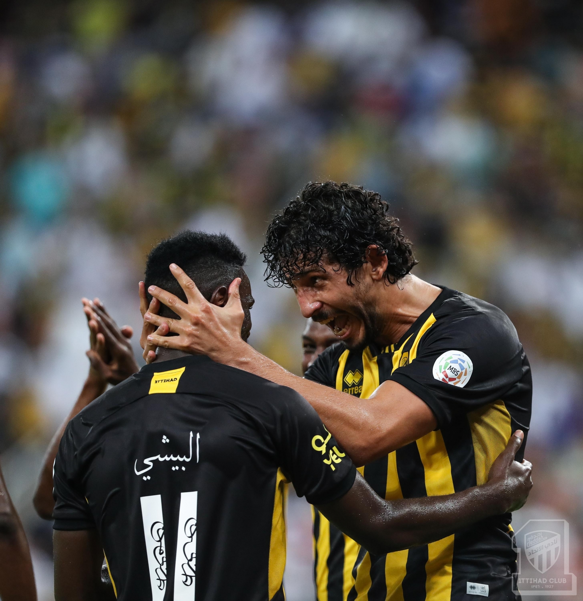 احتفال حجازي – المصدر @SPL شوط سلبي: ومع بداية أحداث الشوط الثاني، واصل الفريقان المحاولات أملًا في إحراز هدف جديد، وتراجع أداء العميد قليلًا، وسط دفاع قوي من لاعبي الفريق الريداوي، لتنتهي مباراة الاتحاد ضد الرائد بفوز النمور بثلاثية نظيفة. ورفع العميد رصيده إلى 3 نقاط في دوري كأس الأمير محمد بن سلمان للمحترفين بعد خسارته بهدف دون رد في الجولة الأولى، فيما تجمد رصيد الفريق الأول لكرة القدم بنادي الرائد عند 3 نقاط أيضًا. لاعبو العميد – المصدر @ittihad مقالات ذات صلة فهد المولد يُهدي هدفه ل حامد البلوي عقيل بلغيث غاضب من تغييره ضد الاتحاد حكم مباراة الاتحاد والرائد في مرمى الانتقادات الاتحاد يتقدم بثلاثية نظيفة في الشوط الأول نادي الاتحاد يتفق مع نياكاتي الاتحاد يزور شباك الرائد مرتين في 15 دقيقة فهد المولد يخطف الأنظار ضد الرائد جستنيه لإدارة الاتحاد: قسوة المحبين لها أسبابها الاتحاد لا يخسر ضد أندية بريدة بدوري محمد بن سلمان